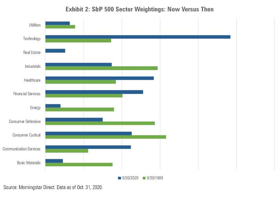 S&P 500 Sector Weightings, Then And Now