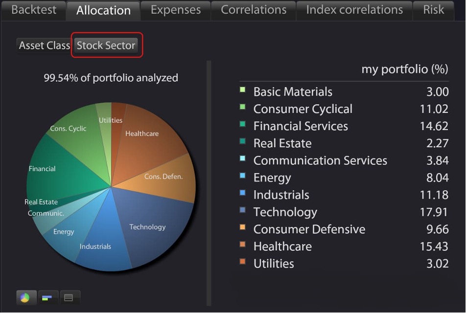 A Sample Investment Portfolio Broken Down by Stock Sector.