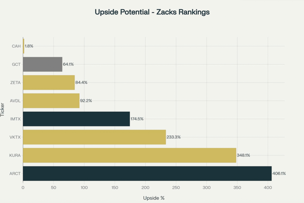 Il confronto dei target price Zacks mostra consensus particolarmente bullish per i titoli biotecnologici, con Arcturus che presenta il più alto upside potenziale (406%) supportato da consenso unanime di 10/10 analisti “Strong Buy” . Kura Oncology mantiene il secondo upside più elevato (348%) nonostante un rating Zacks neutrale, riflettendo le aspettative positive per l’NDA di ziftomenib .